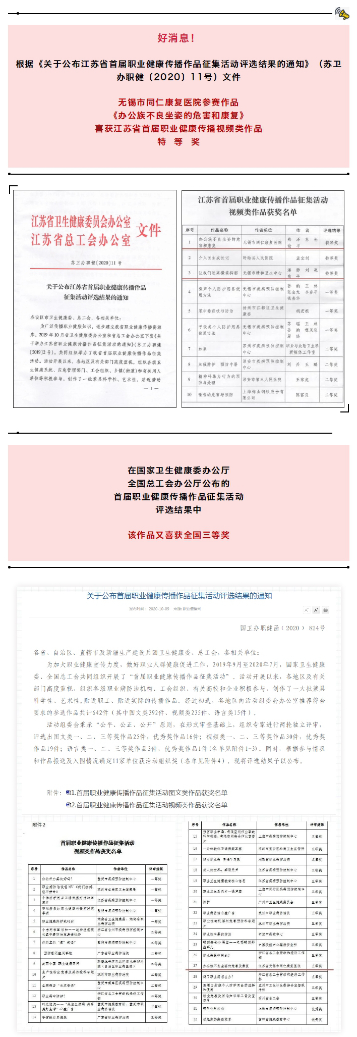 市同仁康复医院职业健康科普作品喜获全国、全省两项大奖