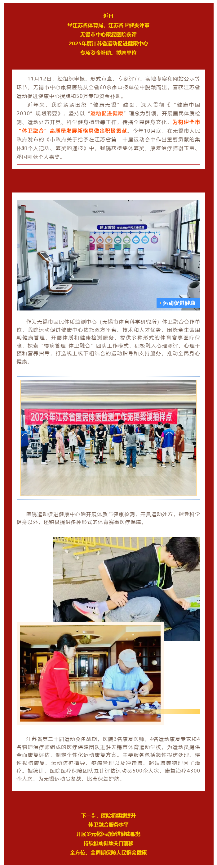 我院获批江苏省运动促进健康中心