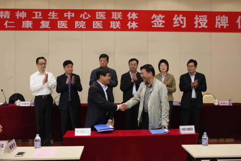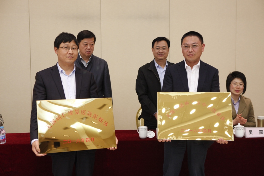 4月25日下午,无锡市精神卫生中心医联体、无锡同仁康复医院医联体签约授牌仪式在无锡(藕塘)职教园举行,成立由无锡市精神卫生中心为核心单位,惠山区精神疾病康复中心为成员单位的“无锡市精神卫生中心医联体”,以及由无锡同仁康复医院为核心单位,惠山区康复医院为成员单位的“无锡同仁康复医院医联体”。