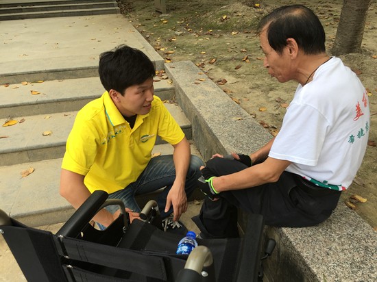 下午虽然天气闷热,却没有阻挡大家的学习热情!“以前从轮椅转移到床上时常要摔倒,没想到是自己的动作与步骤不对,今天终于掌握了诀窍!”、“你看,我可以下三级台阶了,是不是很棒?”……轮友们身上折射出一种乐观开朗、自强不息的精神。康复治疗师郑蒙蒙表示,对待弱者的态度是衡量一个社会文明的标志,国外很多残疾人都使用轮椅外出活动,通过专业的轮椅使用技能训练,帮助、鼓励更多的残障人士走出家门、融入社会很有意义,期待更多的残障人士可以通过专业训练实现自由出行。
