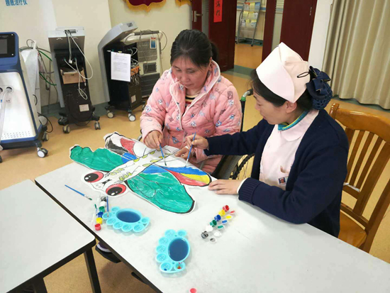 20病区收治的大多是骨与关节康复、疼痛康复患者。开展“涂绘春风 传递健康”活动,让一些病人亲手给风筝赋予色彩,一方面旨在让病人在涂绘风筝的时候感受春天的气息,让自己的心随着五彩的风筝放飞,另一方面也是通过这种方式进行手功能的康复。