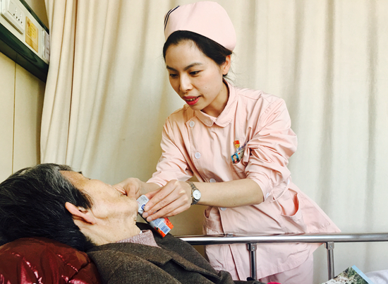 可最终是一个眼神,一个微笑改变了我,坚定了我。那是来自一位70多岁肺癌晚期的老人。病痛已把他折磨得没有了人形,更剥夺了他说话的能力。瘦骨嶙峋的他只能通过眼神与外界交流。每次进入病房为他护理时,我都竭尽自己所能,尽可能把工作做好,每一次离开时,我都会给他一个微笑,希望我的护理和微笑能够帮他减轻痛苦,哪怕只是一点安慰也好。而每一次他也同样会回报我一个笑容,就像他能洞察我的内心一般。直到最后一次见他,那是跟着医生和老师们在病房里对他进行抢救,他透过人群看到了我,同时也把他生命中最后一次微笑留给了我,从他的眼神和笑容中我看到了肯定和鼓励,从此在我的脑海里深深地烙下了永远也抹不走的印记。一切尽在不言中,他用最好的语言向我进行了告别!从此这个世界上多了一个叫“谢丹”的护士!