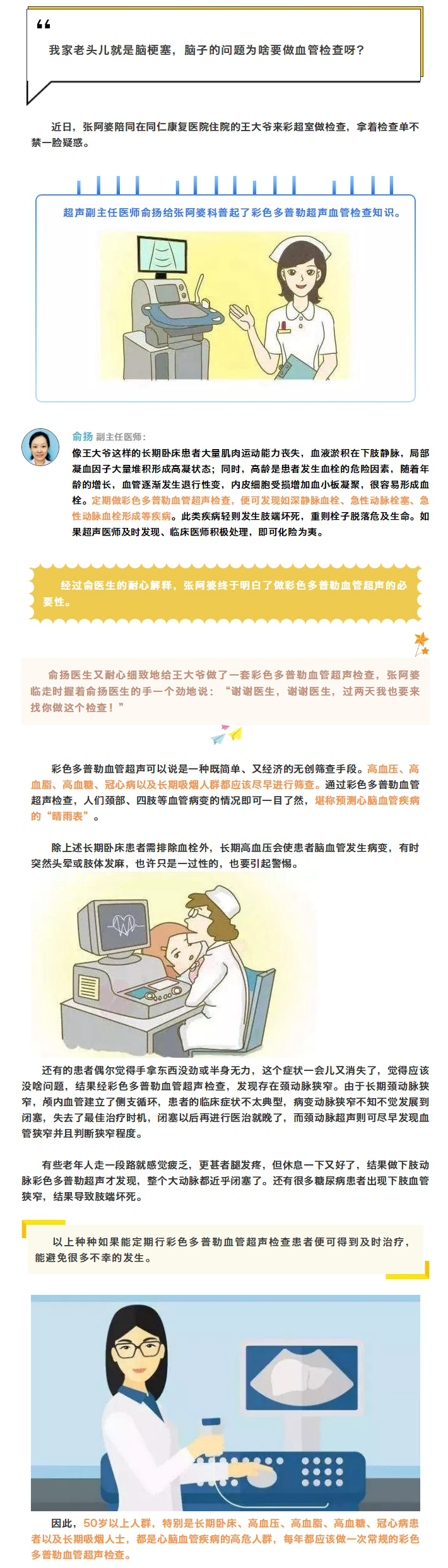 心脑血管疾病高危人群应每年做一次彩色多普勒血管超声检查