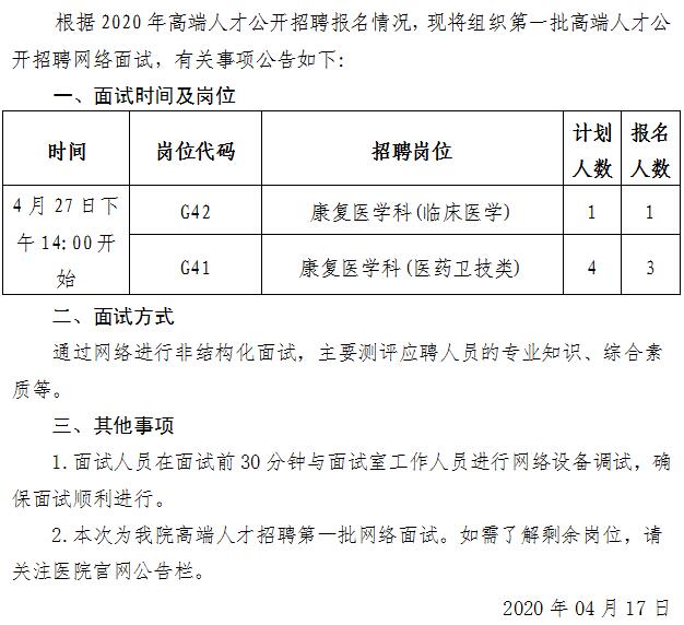 2020年高端人才第一批网络面试公告