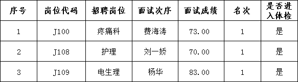 2020年紧缺性人才公开招聘第一批面试成绩公示