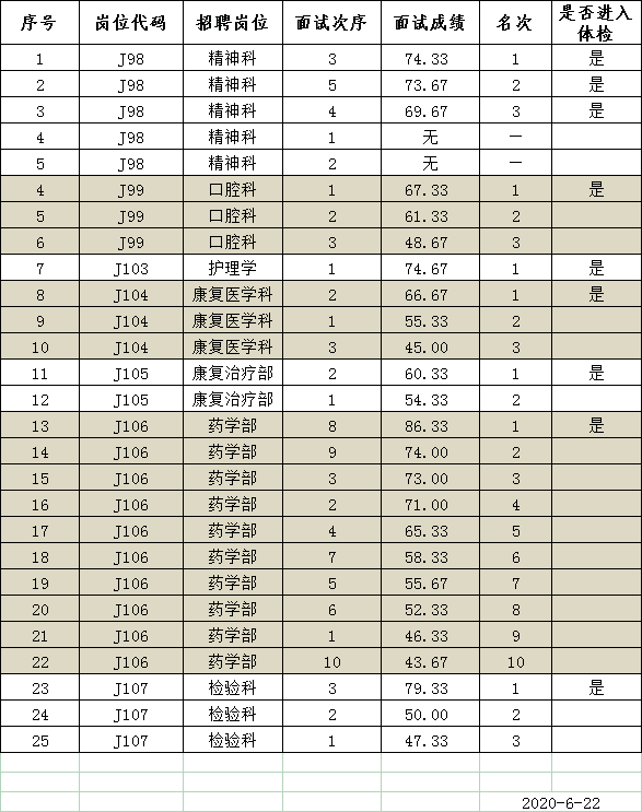 2020年紧缺性人才公开招聘第二批面试成绩公示