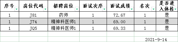 2021年紧缺性人才公开招聘第二批面试成绩公示